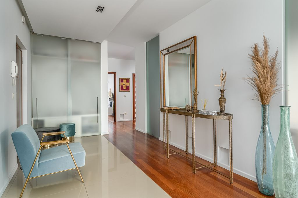 Wyjątkowy, 4 pokojowy Apartament, zlokalizowany w kameralnej inwestycji na Zawadach. Niewątpliwymi jego atutami są funkcjonalny rozkład, wysokie, liczne okna dające dużo naturalnego światła oraz przestronny taras (12 ,33 m2 ). APARTAMENT: 4 pokojowy Apartament o powierzchni 135, 23 m 2 składa się z : - przestronnego, słonecznego salonu, z wyjściem na taras. - słonecznej jadalni z otwartą kuchnią, w pełni wyposażoną w sprzęt AGD - toalety gościnnej - sypialni typu master, z własną łazienką i garderobą - dwóch ustawnych sypialni - dodatkowej łazienki wyposażonej w wygodną wannę - holu komunikacyjnego z komfortową zabudową szaf Do Apartamentu przynależą 2 miejsca postojowe stacjonarne w garażu podziemnym oraz komórka lokatorska ( 5,22 m 2), płatne dodatkowo 120 000 zł za całość. BUDYNEK/ LOKALIZACJA : Kameralny kompleks 5 niskich apartamentowców wybudowany przez prestiżowego developera Inart S.A. Niska, nowoczesna zabudowa, reprezentacyjne, przestronne korytarze oraz zadbane zielone patio. Inwestycje charakteryzuje wysoka jakość materiałów wykończeniowych. W niedalekim sąsiedztwie znajduje się centrum handlowe Plac Vogla oraz liczne punkty usługowe i handlowe. W bliskiej okolicy znajdziemy również przychodnie, żłobki, przedszkola oraz szkoły (w tym szkoły międzynarodowe - American School of Warsaw, British School, Polsko-Niemiecka Szkoła WBS, Francuzka Szkoła La Fontaine). Miejsce idealne dla osób ceniących sobie bliskość zielonych terenów spacerowych oraz miejsca aktywności fizycznej jak: pole golfowe, spa, fitness, squash, wake park.