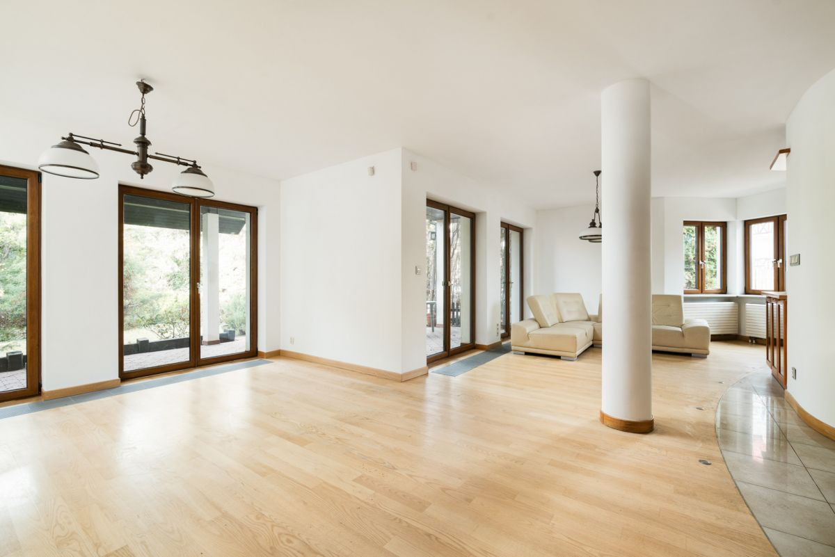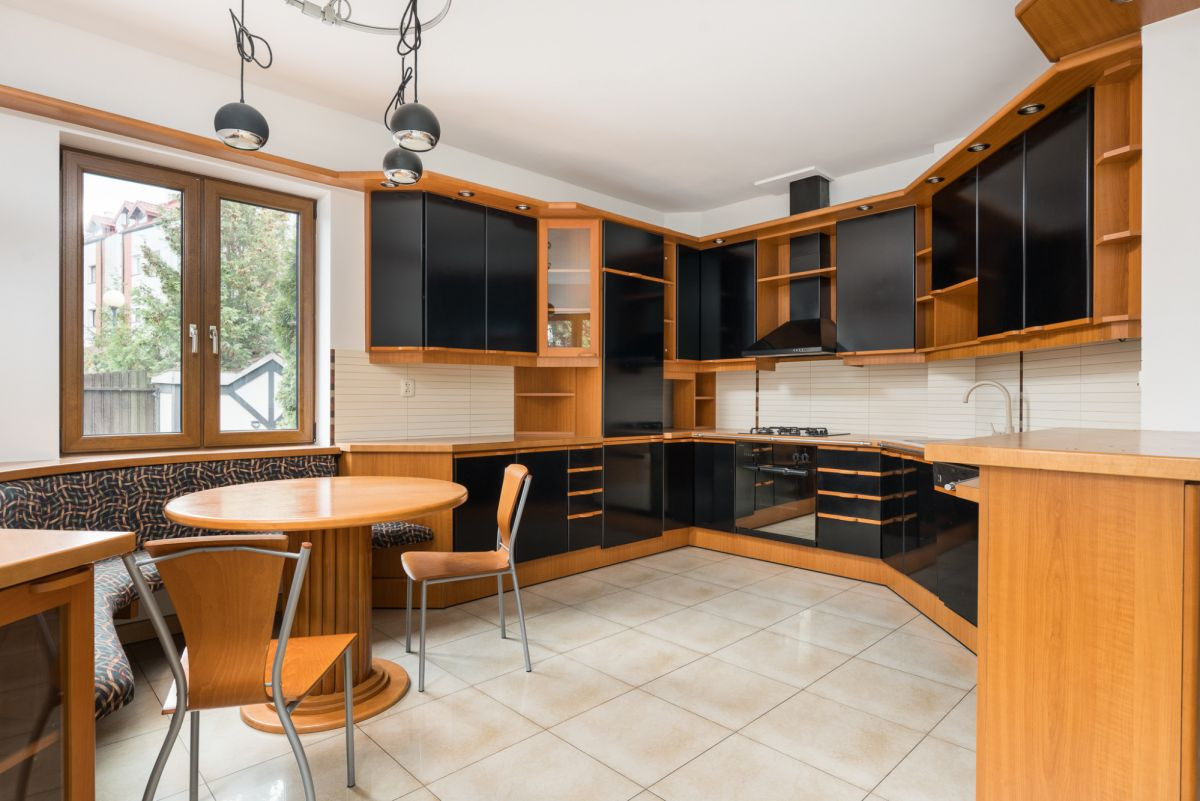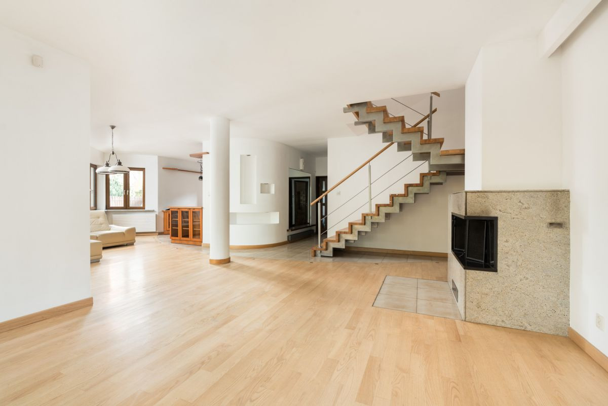 • przestronny salon z kominkiem z wyjściem na taras i ogród, połączony z dużą kuchnią
