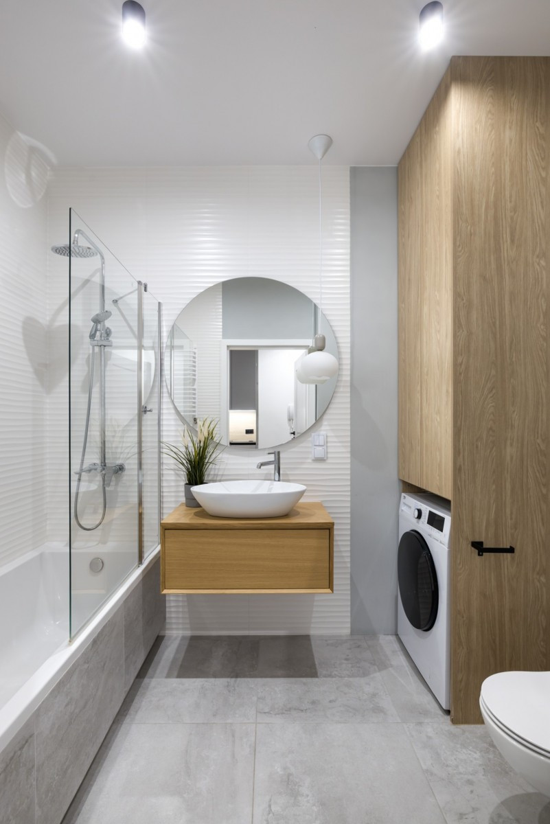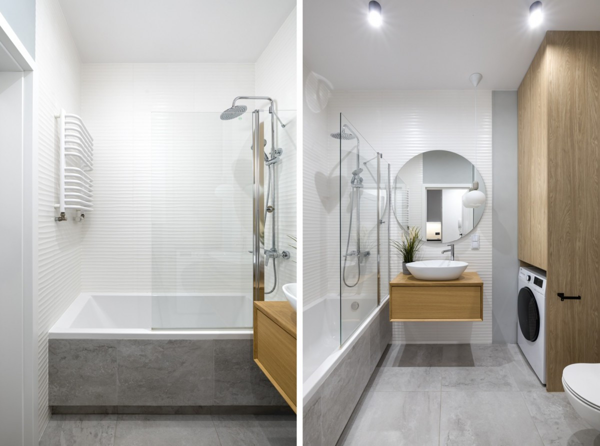 łazienki (ok. 4 m²) - z WC, wanną z funkcją prysznica, pralką,