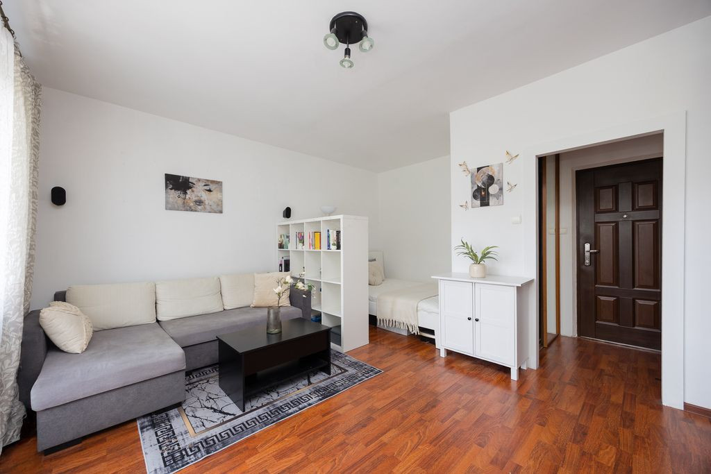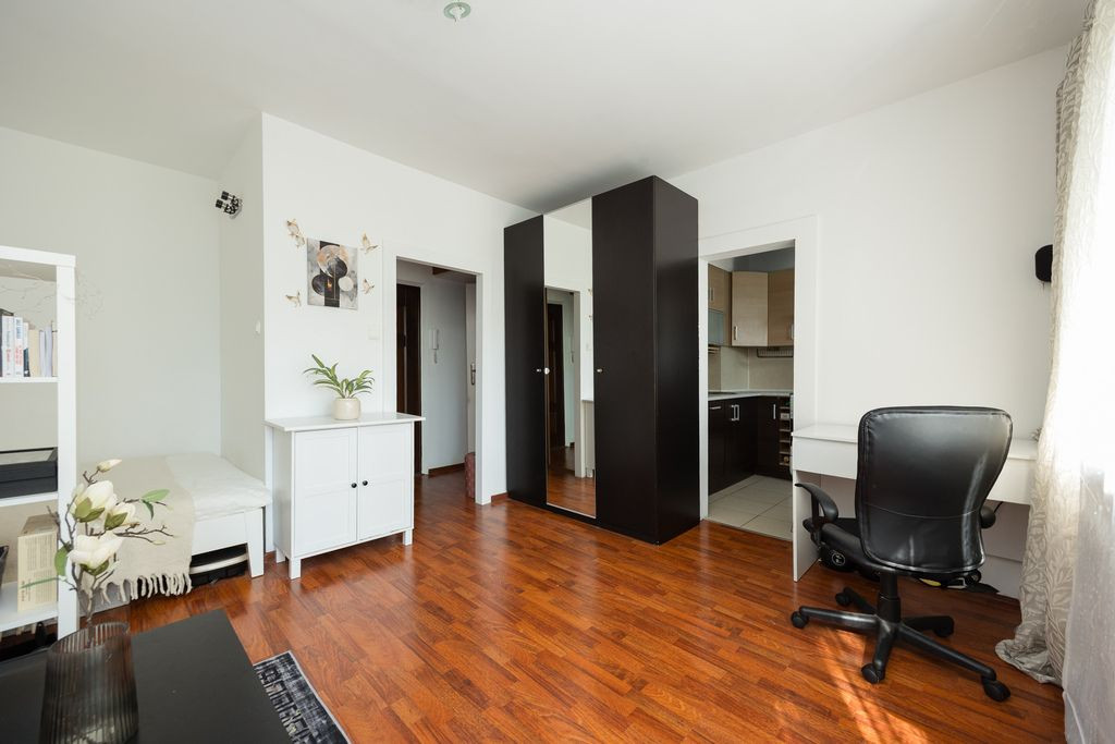 Gotowe do wprowadzenia Kameralna, zielona okolica Świetna komunikacja Idealne pod inwestycję Na sprzedaż kawalerka z oddzielną kuchnią o powierzchni 30,5 m², położona przy ul. Katalońskiej 3 w Warszawie (Mokotów – Stegny). Mieszkanie znajduje się na 5. piętrze w zadbanym, 11-piętrowym bloku z lat 70., wyposażonym w windę. Nieruchomość jest gotowa do zamieszkania lub dalszego wynajmu – obecnie wynajmowana od dłuższego czasu. Sprzedawana z pełnym umeblowaniem i wyposażeniem. Osiedle jest wyjątkowo zielone i spokojne, a budynkiem zarządza prężnie działająca spółdzielnia. Do dyspozycji mieszkańców są liczne miejsca parkingowe pod blokiem, odgrodzone szlabanem od ulicy.Mieszkanie składa się z:- Pokoju dziennego z francuskim balkonem i widokiem na zieleń – okna PCV, ekspozycja wschodnia (piękne poranne światło),- oddzielnej, widnej kuchni z pełnym AGD (lodówka, zmywarka, piekarnik, mikrofalówka, kuchenka gazowa, okap),- łazienki z wanną,- przedpokoju z miejscem do przechowywania. Na podłogach znajduje się parkiet, wysokość pomieszczeń to 260 cm. Do mieszkania przynależy również piwnica. Cena: 515 000 zł Czynsz administracyjny: ok. 600 złGrunty są uregulowane, możliwość założenia Księgi Wieczystej. INWESTYCJA I OTOCZENIE: Budynek jest w dobrym stanie technicznym, posiada domofon oraz zadbane części wspólne. Spółdzielnia dba o otoczenie, zieleń i infrastrukturę osiedla. Okolica wyróżnia się dużą ilością zieleni i spokojnym charakterem zabudowy. W bliskim sąsiedztwie znajdują się:- Park im. Stanisława Dygata (ok. 6,3 ha – alejki spacerowe, polany rekreacyjne, ławki),- tereny zielone Stegien i pobliskiej Sadyby,- ścieżki spacerowe i rowerowe, place zabaw, skwery na osiedlu. KOMUNIKACJA: - Szybki dojazd do centrum (ok. 20 minut samochodem),- liczne linie autobusowe z przystanków Stegny i Patkowskiego,- dogodny dojazd do stacji metra (ok. 10 minut – Metro Wilanowska lub Metro Służew),- szybki dostęp do przystanków tramwajowych przy al. Sobieskiego (linie 14, 16, 19),- bliskość głównych arterii: al. gen. Sikorskiego, al. Sobieskiego, al. Wilanowska,- szybki dostęp do trasy S2. EDUKACJA: - W okolicy szkoły podstawowe i przedszkola,- uczelnie wyższe z bardzo dobrym dojazdem: SGH, SGGW, Uniwersytet Warszawski (kampus Służewiec). ZAKUPY I USŁUGI: - Osiedlowe sklepy, piekarnie, punkty usługowe,- bazarek przy ul. Bonifacego – codzienne świeże produkty,- centra handlowe: Galeria Panorama, Sadyba Best Mall, Galeria Mokotów, CH Land,- liczne restauracje, kawiarnie, apteki i przychodnie w zasięgu kilku minut. PODSUMOWANIE: To mieszkanie to doskonała propozycja zarówno dla singla, pary, jak i inwestora szukającego bezpiecznej lokaty kapitału. Gotowe do zamieszkania, z pełnym wyposażeniem, świetnie zlokalizowane – zapewnia ciszę, zieleń i szybki dostęp do centrum Warszawy.
