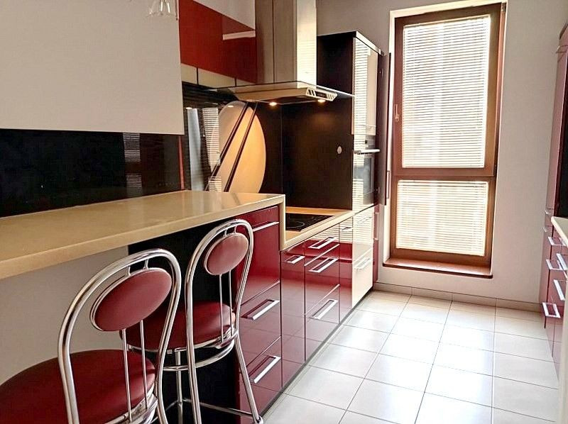 The apartment is fully equipped and furnished, incl. a double bed in the bedroom, a sofa in the living room (replaced with a new one with a sleeping function - additional photos in the offer) , a table with chairs, a TV cabinet, a TV set. In addition, built-in chests of drawers and wardrobes (bedroom, hall). The kitchen is equipped with full appliances, washing machine in the bathroom.