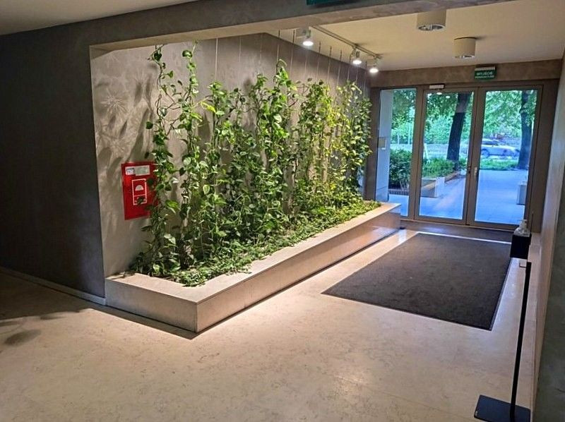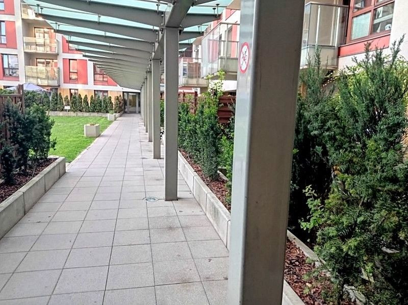 Budynek o podwyższonym standardzie z recepcją, reprezentacyjnym holem, ładnie zaaranżowanym patio.