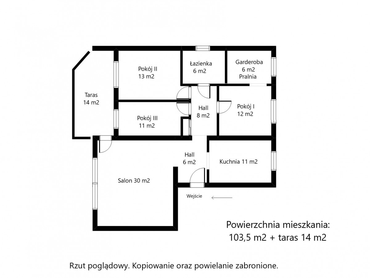 Na sprzedaż luksusowe 4 pokojowe mieszkanie o powierzchni użytkowej 103,5 m2, do którego przynależy taras o powierzchni 14 m2.