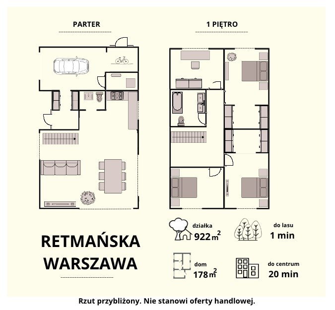 Na piętrze znajdują się 4 przestronne pokoje, idealne dla rodziny, pracy zdalnej lub wypoczynku. Cały budynek wykonano z materiałów najwyższej jakości, z naciskiem na trwałość, styl i ekologię. Przestronne, jasne pokoje, o przemyślanym układzie, dzięki czemu przyszli mieszkańcy będą mieli znaczne możliwości aranżacyjne dla swoich przestrzeni.