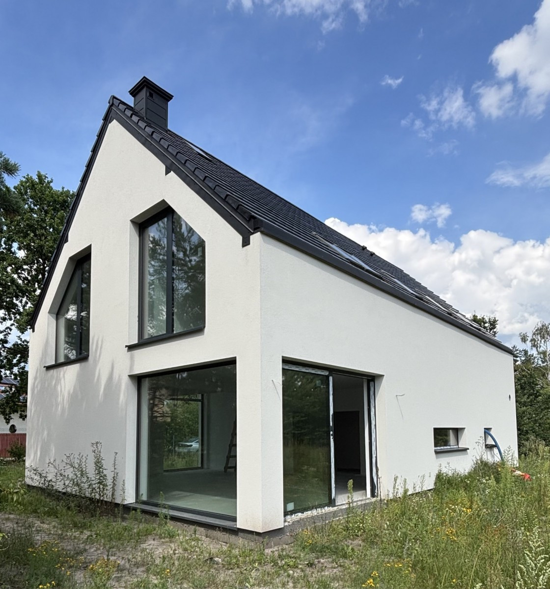 Ten niepowtarzalny dom w stanie deweloperskim został zbudowany z dbałością o każdy detal - od solidnych fundamentów po panoramiczne okna, przez które codziennie wpada naturalne światło i zieleń z otoczenia.