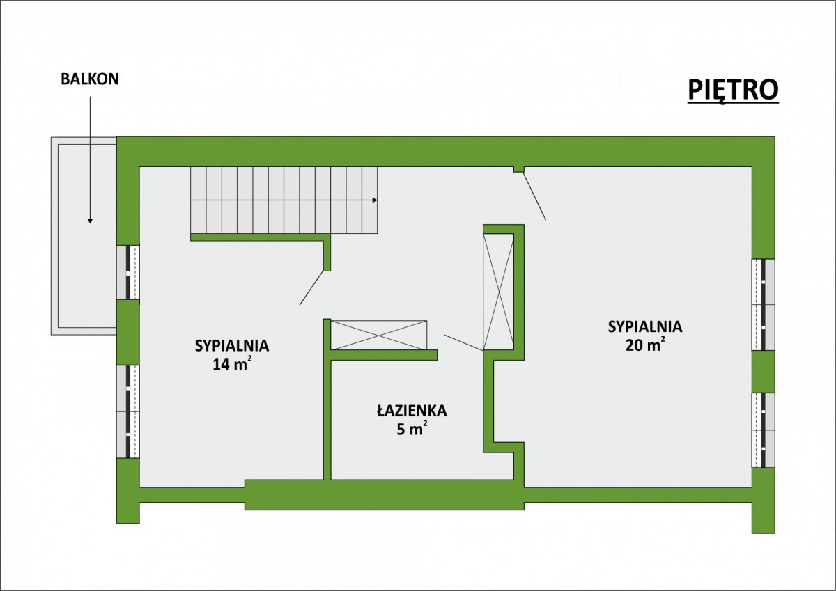 Sypialnia 20m. Sypialnia 14m. Łazienka 5m.