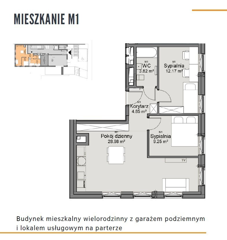 Mieszkanie 3-pokojowe o powierzchni ok. 59 m², położone na parterze eleganckiego, 2-piętrowego budynku, łączy nowoczesność z funkcjonalnością. Wysokość ponad 4 m umożliwia zrobienie apartamentu 2 poziomowego - w cenie mieszkania wykonanie schodów i konstrukcji dla 2go poziomu.