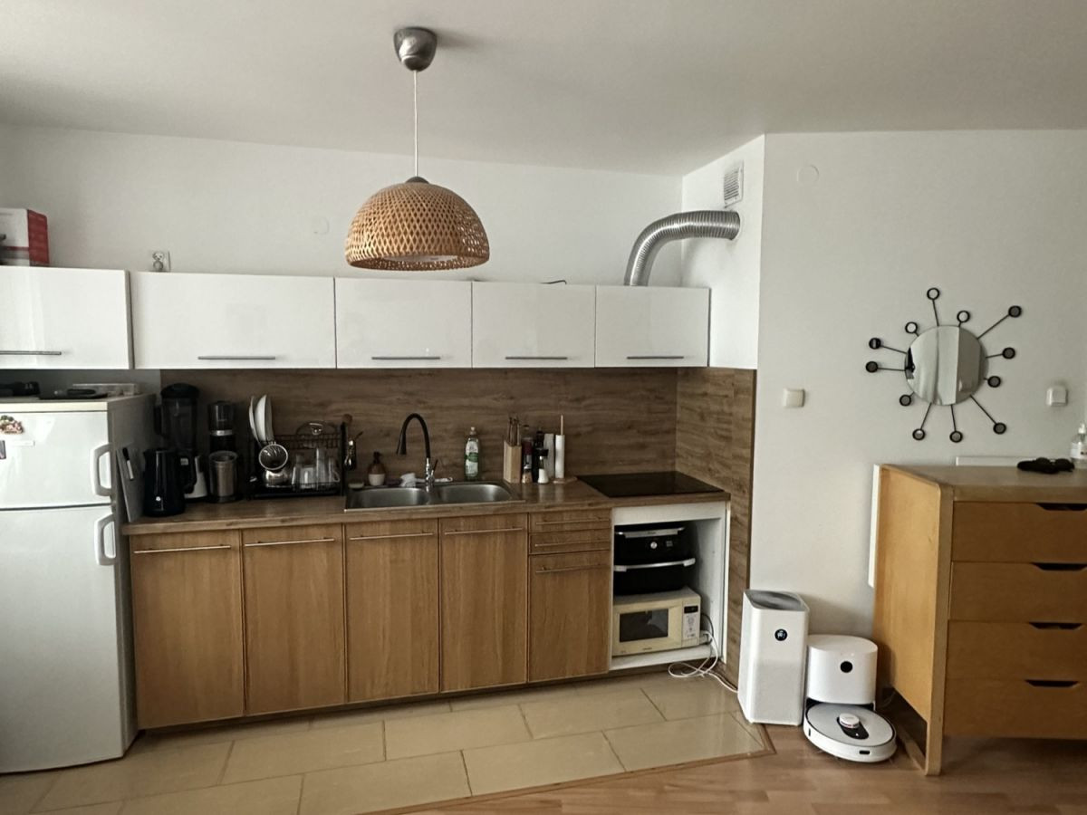 Znajduje się w budynku sąsiadującym z wejściem do do metra Natolin ,ale położenie mieszkania na południowy wschód powoduje że jest ono ciche i dobrze doświetlone.
