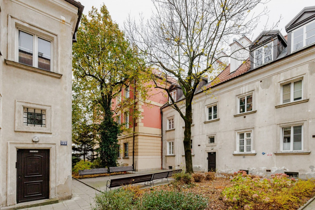 The tenement house in which the presented apartment is located was destroyed during the Warsaw Uprising. Only part of the first floor remains. Exactly the one in which the apartment is located, the rest was rebuilt in 1953.