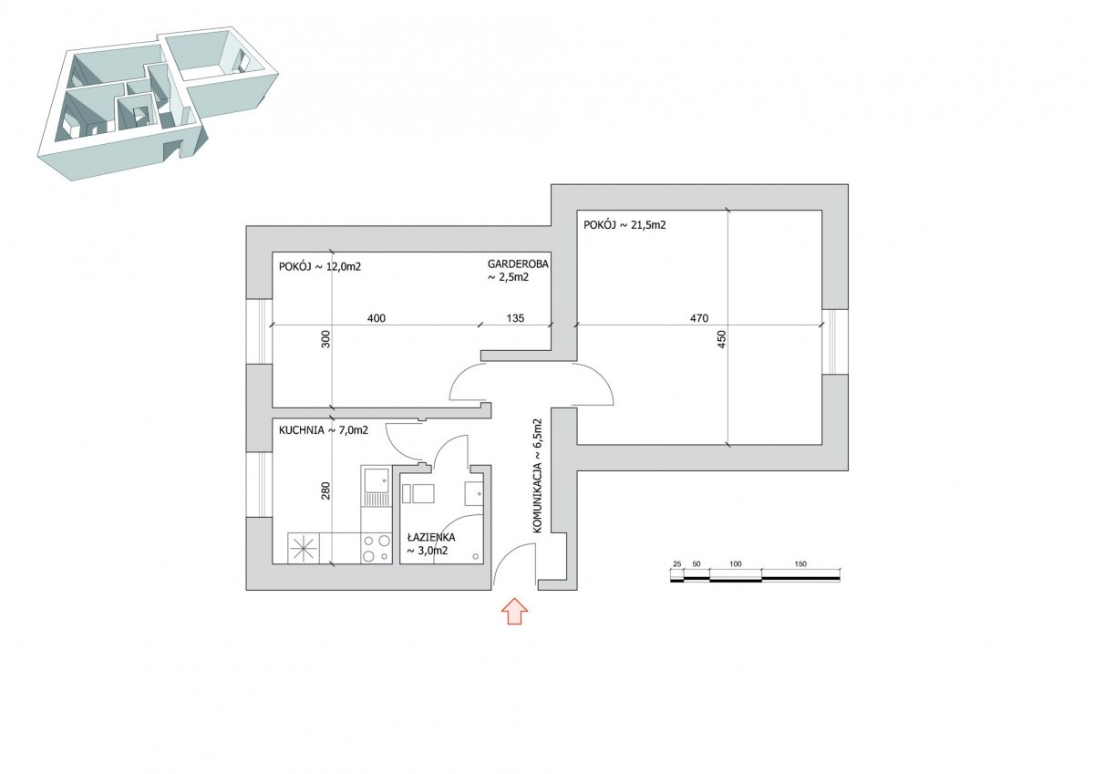 Mieszkanie, o powierzchni blisko 53 m2, jest dwupokojowe z osobną kuchnią i łazienką. Ma przejrzysty układ i dobrą orientację wg. stron świata. Można je w prosty sposób zaadaptować do współczesnych standardów lub przeprojektować zamieniając w apartament, biuro adwokata czy gabinet psychologiczny. Jego wysokość czyli 3 m sprawia, że mieszkanie jest jeszcze bardziej przestrzenne. Ogrzewanie z sieci miejskiej, gaz, ciepła woda (piec gazowy).