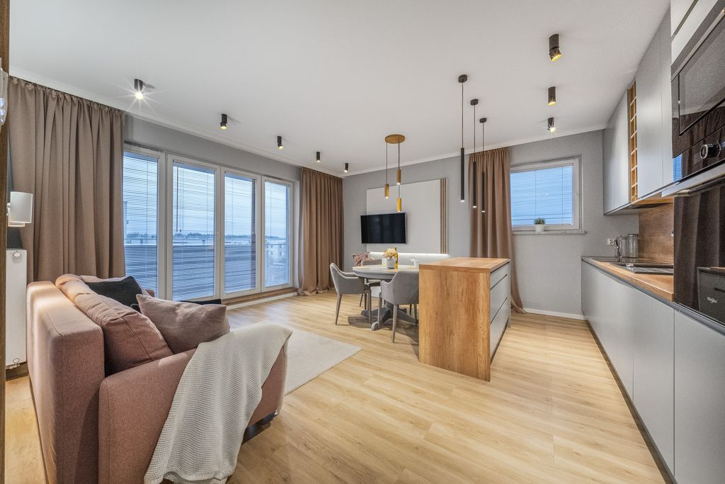 Nowoczesne, w pełni urządzone mieszkanie 44,8 m² – gotowe do zamieszkania Warszawa-Białołęka ul. A. Corellego.Budynek z 2018 roku, lokal znajduje się na drugim piętrze w bloku dwu piętrowym z windą . Osiedle zamknięte. Miejsce postojowe w garażu podziemnym. Polecam na sprzedaż komfortowe, nowoczesne mieszkanie o powierzchni 44,8 m², położone w budynku z 2018 roku, na kameralnym i ogrodzonym osiedlu. Mieszkanie zostało zaprojektowane przez architekta wnętrz – jest nowoczesne, ponadczasowe i pełne smaku. Większość mebli wykonano na zamówienie przez stolarza, co zapewnia spójność kolorystyczną i materiałową oraz maksymalne wykorzystanie przestrzeni. We wnętrzu zastosowano wiele rozwiązań optycznie powiększających przestrzeń. Otwarty salon z aneksem kuchennym, funkcjonalna sypialnia, praktyczny przedpokój oraz łazienka tworzą przytulną, harmonijną całość. Aranżacja oparta została na ponadczasowej palecie barw – bieli, jasnych szarościach i czerni, co nadaje wnętrzu elegancji i lekkości. Całości dopełnia 4-metrowy balkon wyłożony brązową deską, idealny na poranną kawę lub wieczorny relaks. Rozkład mieszkania: Korytarz – szafa w zabudowie z częścią gospodarczą - 5,58m2 Sypialnia – z pojemną szafą wykonaną na zamówienie - 9,80m2 Salon z aneksem kuchennym – zabudowa wykonana na wymiar - 25,50m2, wyjście na duży balkon - 4,68m2 Łazienka z kabiną prysznicową– elegancka, w nowoczesnej aranżacji - 3,92m2 Dodatkowe informacje: Mieszkanie gotowe do zamieszkania, nie wymaga żadnych nakładów finansowych Sprzedawane z meblami w zabudowie – w cenie Meble ruchome – do uzgodnienia Miejsce postojowe w garażu podziemnym – zakup obligatoryjny, 50 000 zł Niski czynsz Mieszkanie idealnie sprawdzi się dla singla, pary, osoby starszej lub z niepełnosprawnością – dzięki windzie i wygodnemu układowi pomieszczeń.Okolica i infrastruktura:Nowoczesne, zadbane i bezpieczne osiedle z placami zabaw i terenami zielonymiTuż za osiedlem: szkoła podstawowa, w pobliżu przedszkola, żłobkiSklepy w okolicy: Carrefour, Żabka (2), Stokrotka, Lewiatan, apteka, poczta, weterynarzW dalszej odległości: Lidl, Biedronka, Netto, Factory Annopol, CH Targówek, CH M1Las oraz dogodny dojazd nad Zalew ZegrzyńskiKomunikacja:W pobliżu pętla autobusowa z liniami: 120, 134, 226, N14 – bezpośredni dojazd do stacji Metro Marymont i Metro KondratowiczaW planach budowa linii tramwajowej przy ul. ZaułekZapraszam do kontaktu i na prezentację.To mieszkanie to doskonałe połączenie komfortu, ciszy i wygodnej lokalizacji.