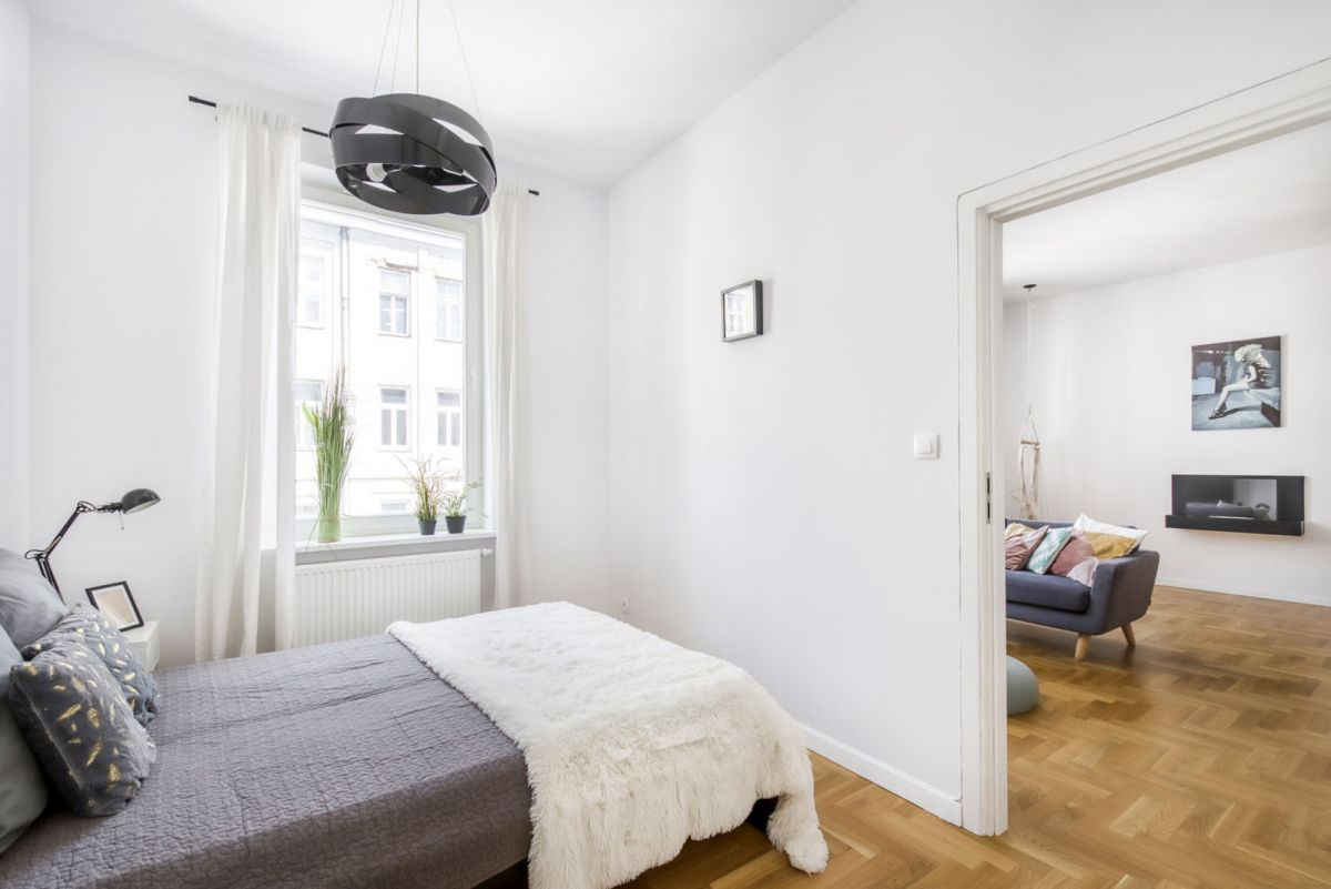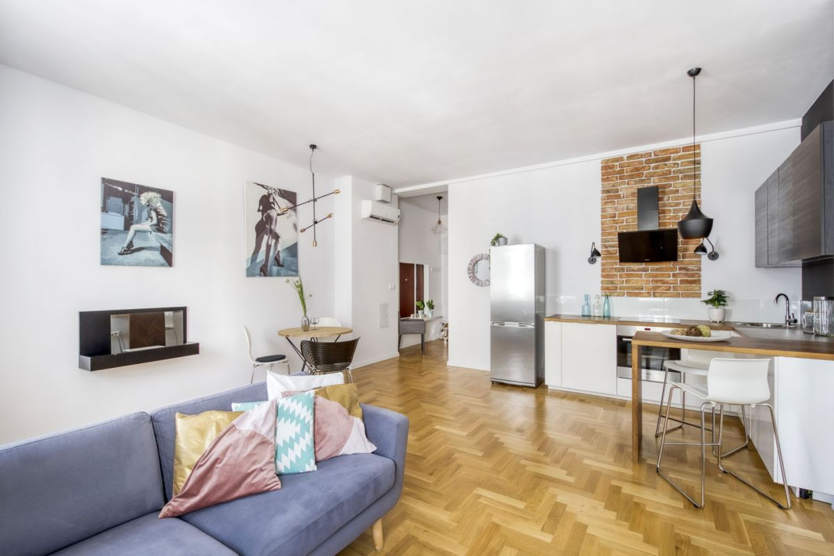 Funkcjonalny rozkład na 56 mkw powierzchni, na którym znajduje się salon z wyposażonym aneksem kuchennym, sypialnia z przestronną garderobą, łazienka z wanną i funkcją prysznica. Mieszkanie położone na trzecim piętrze w przedwojennej, zrewitalizowanej kamienicy. Wysoki standard wykończenia, czyli m.in.: nowy parkiet, nowe drewniane okna, klimatyzacja.