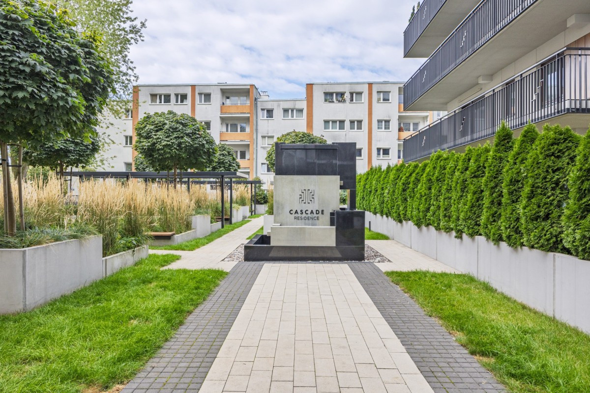 Cascade Residence to prestiżowa inwestycja zrealizowana przez Marvipol Development przy ul. Modzelewskiego 63 na Mokotowie. Kameralny apartamentowiec oferuje 39 mieszkań o zróżnicowanych metrażach - od funkcjonalnych 2-pokojowych po przestronne apartamenty z antresolą. Budynek wyróżnia się nowoczesną architekturą, wysokiej klasy wykończeniem oraz eleganckim lobby z całodobową recepcją. Do dyspozycji mieszkańców jest prywatny ogród z fontanną, garaż podziemny i system monitoringu.Lokalizacja zapewnia spokój zielonej części Mokotowa, a jednocześnie szybki dostęp do stacji metra Wierzbno, biznesowego centrum dzielnicy oraz pełnej infrastruktury usługowej i rekreacyjnej.