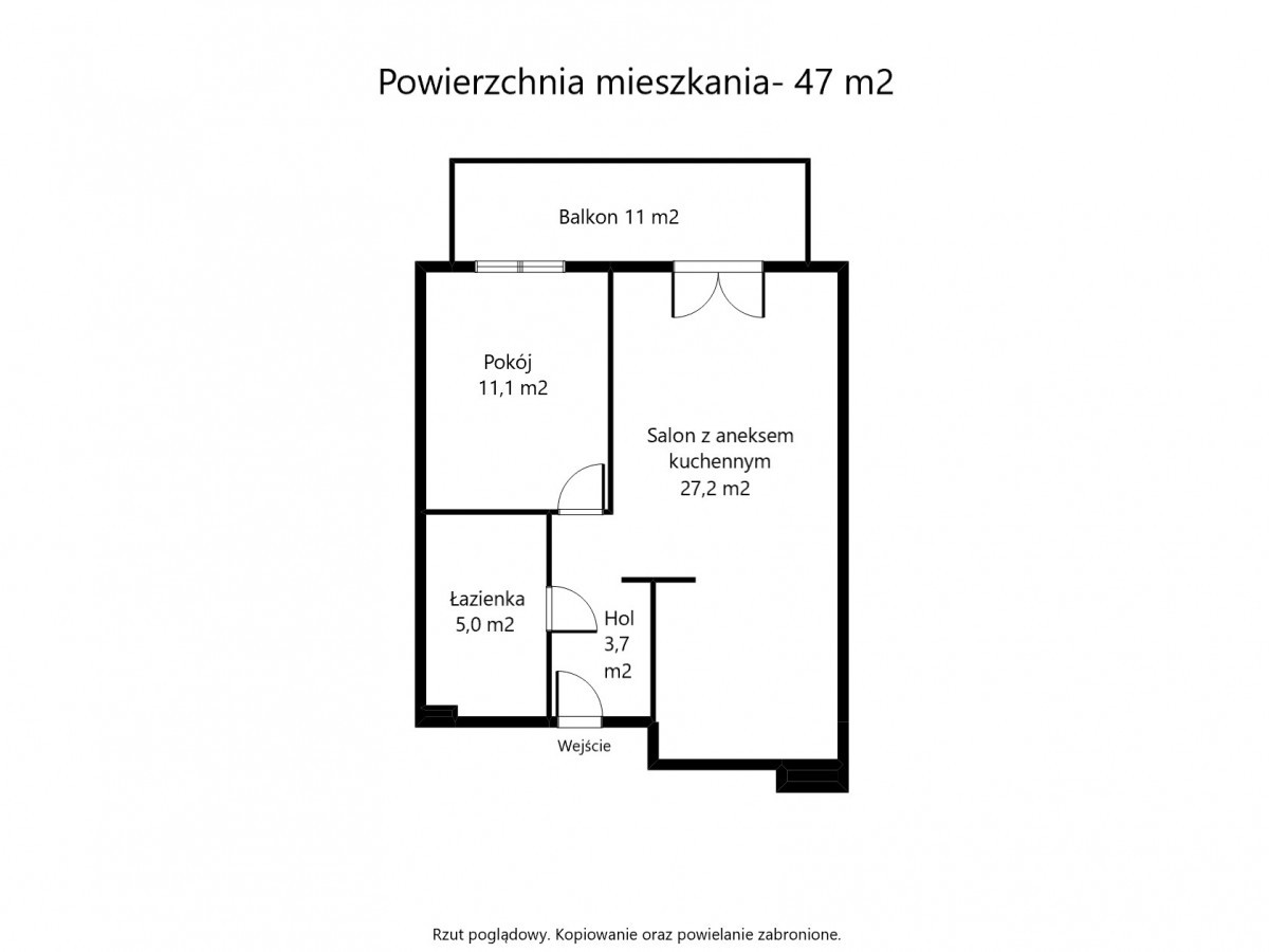 Powierzchnia mieszkania 47 m2. Nowe budownictwo z 2020 roku. Renomowany deweloper Robyg.