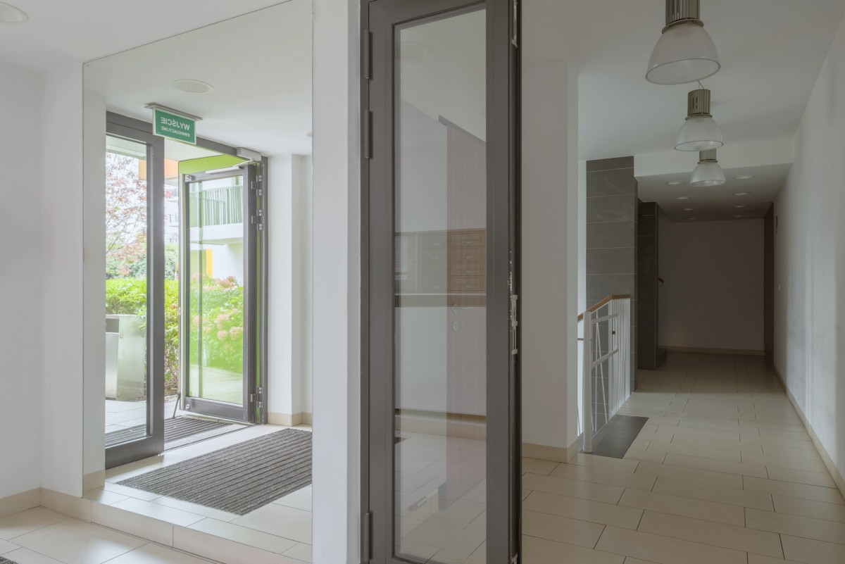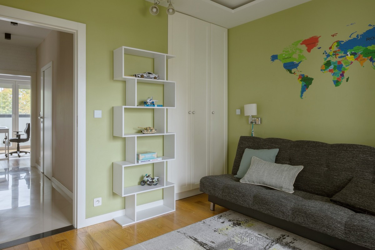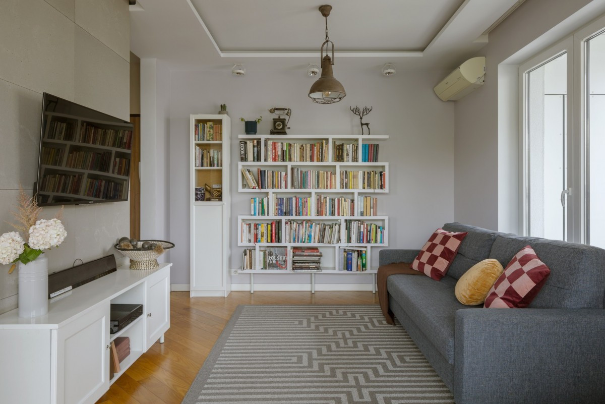 W mieszkaniu znajduje się wiele szaf w zabudowie, oferujących dużo miejsca do przechowywania.