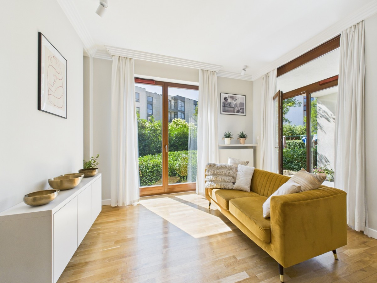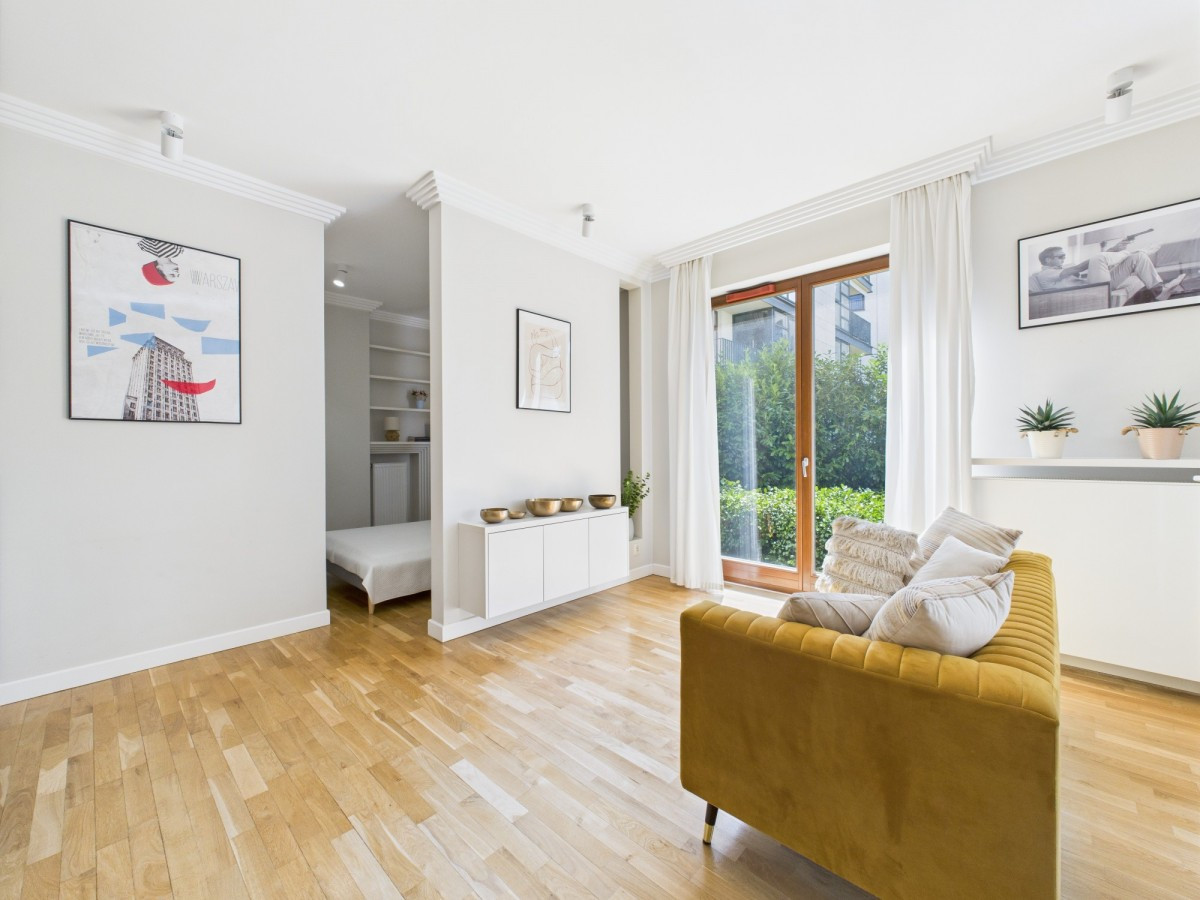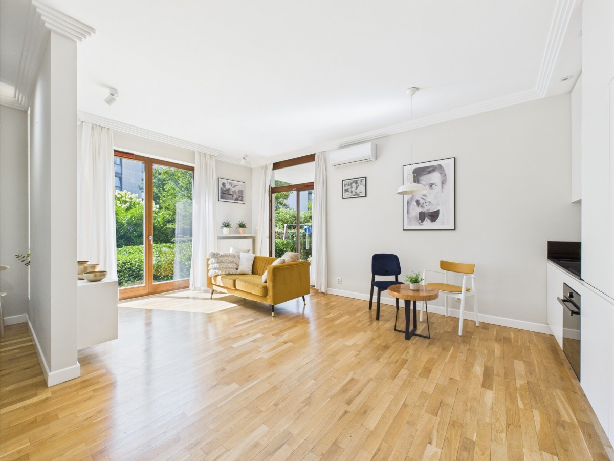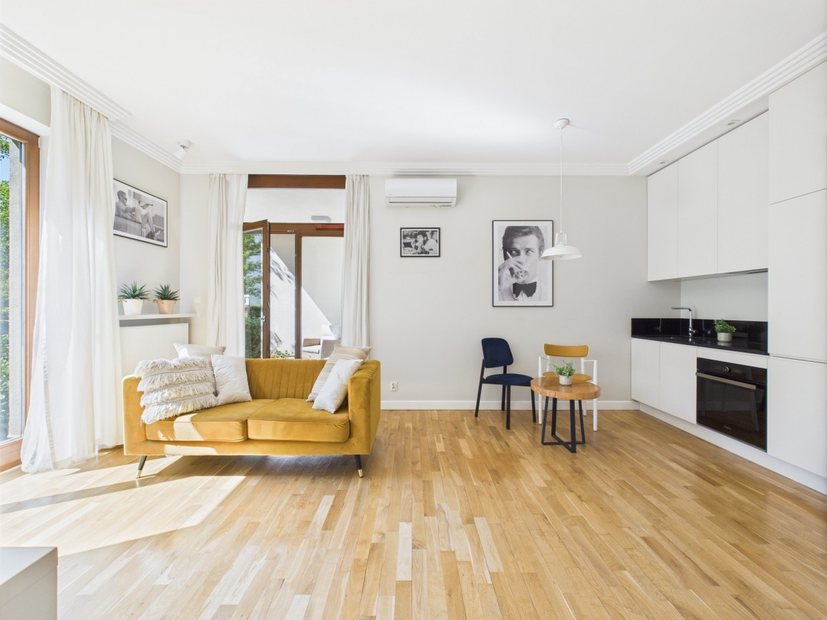Mieszkanie idealne dla singli i par, które cenią przestronne wnętrze, ogródek a jednocześnie optymalną lokalizację, w zasięgu spaceru od najciekawszych atrakcji Miasteczka.