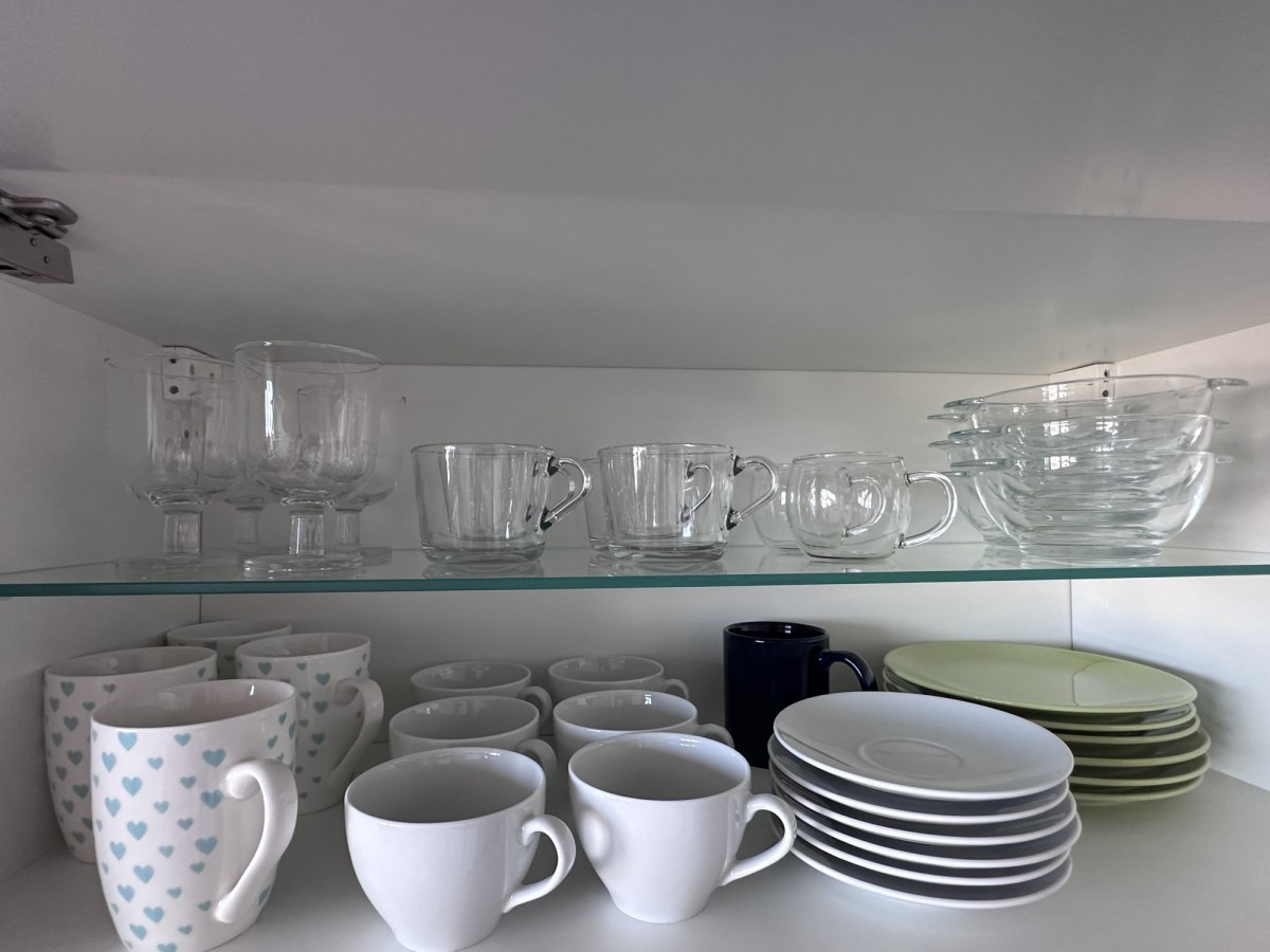 Przy wejściu znajduje się garderoba z pralką, odkurzaczem, deską i żelazkiem do prasowania oraz suszarką na pranie.