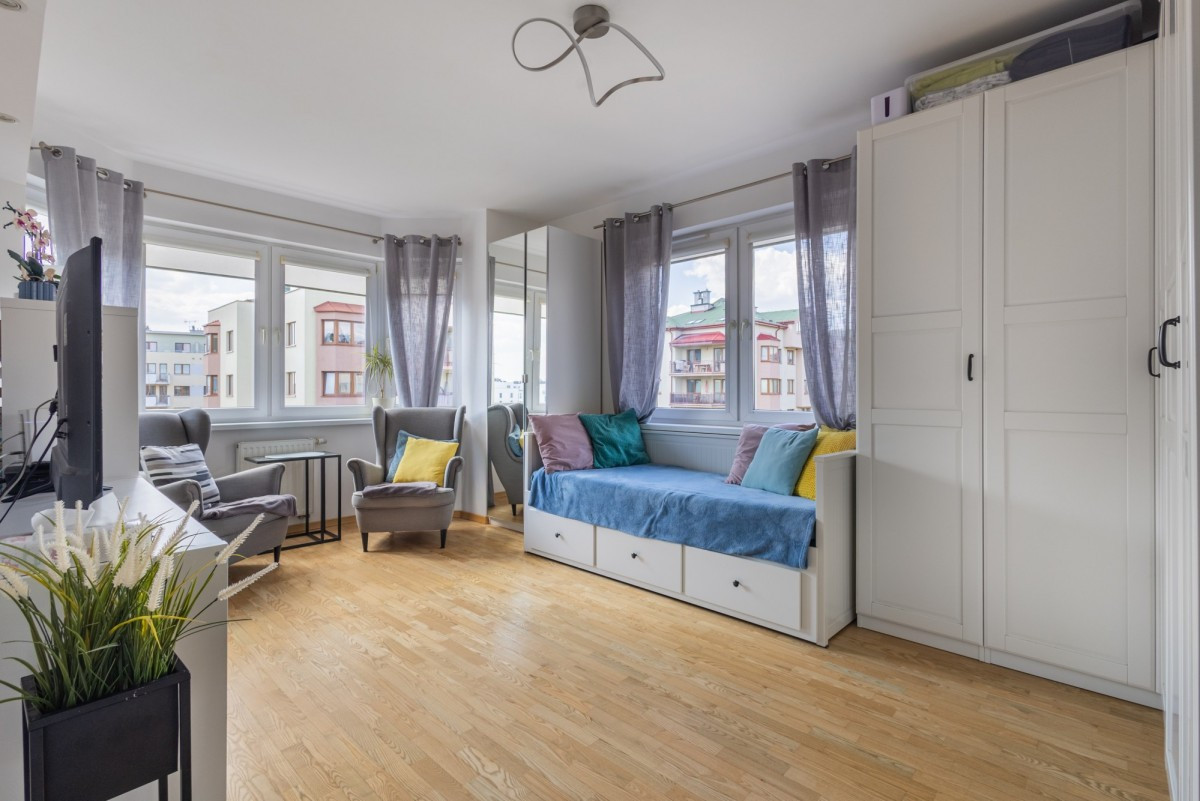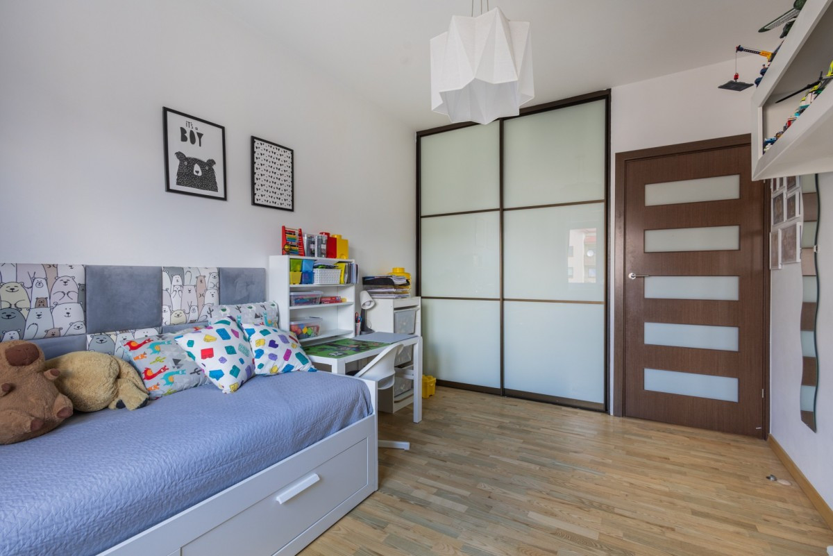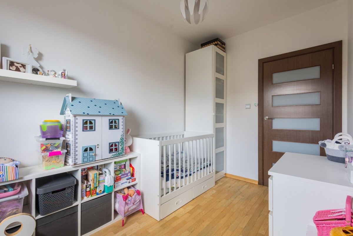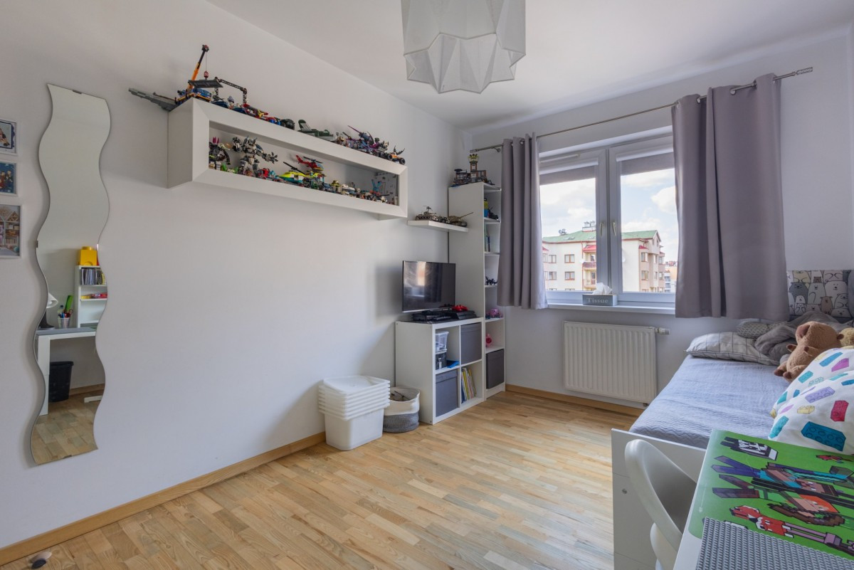Dodatkowo, w mieszkaniu znajdują się również 2 pokoje dla dzieci. Jeden z nich znajduje się pomiędzy salonem i jadalnią oraz posiada wyjście na duży balkon. Drugi zlokalizowany jest tuż obok salonu i znajduje się w nim miejsce na duże łóżko, dużą szafę wnękową.