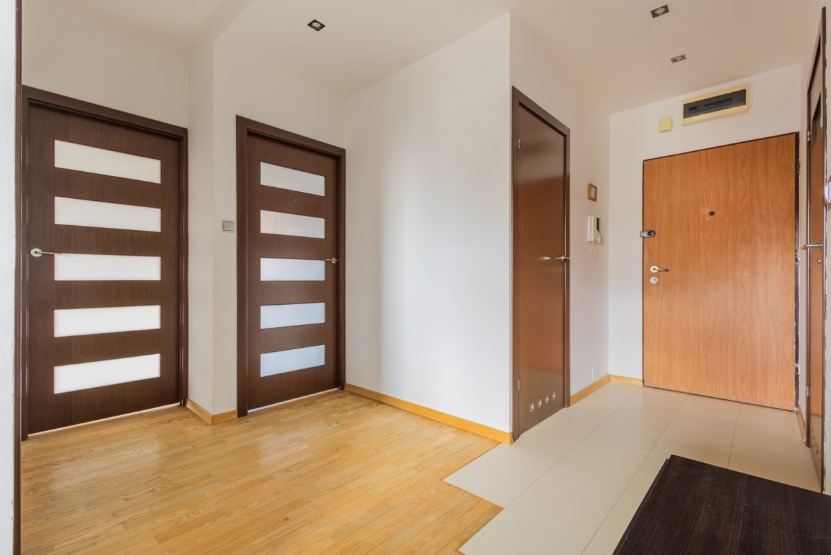 Tuż obok wejścia do mieszkania znajduje się garderoba oraz łazienka, co zwiększa komfort dla przyszłych mieszkańców. Łazienka wyposażona jest w dużą wannę. W garderobie jest miejsce na szafę, w której pomieszczą się narty oraz kurtki.