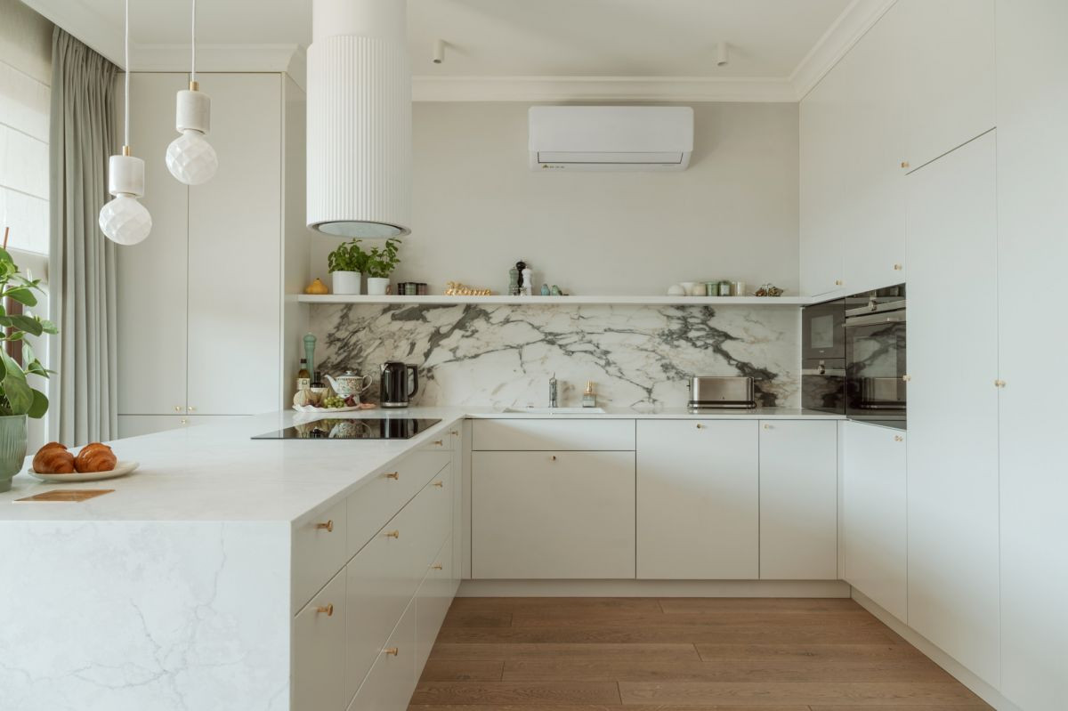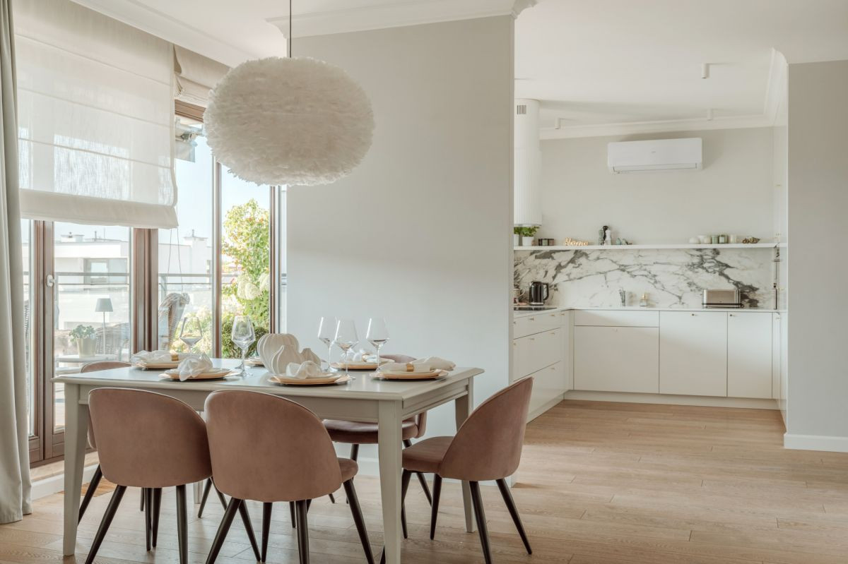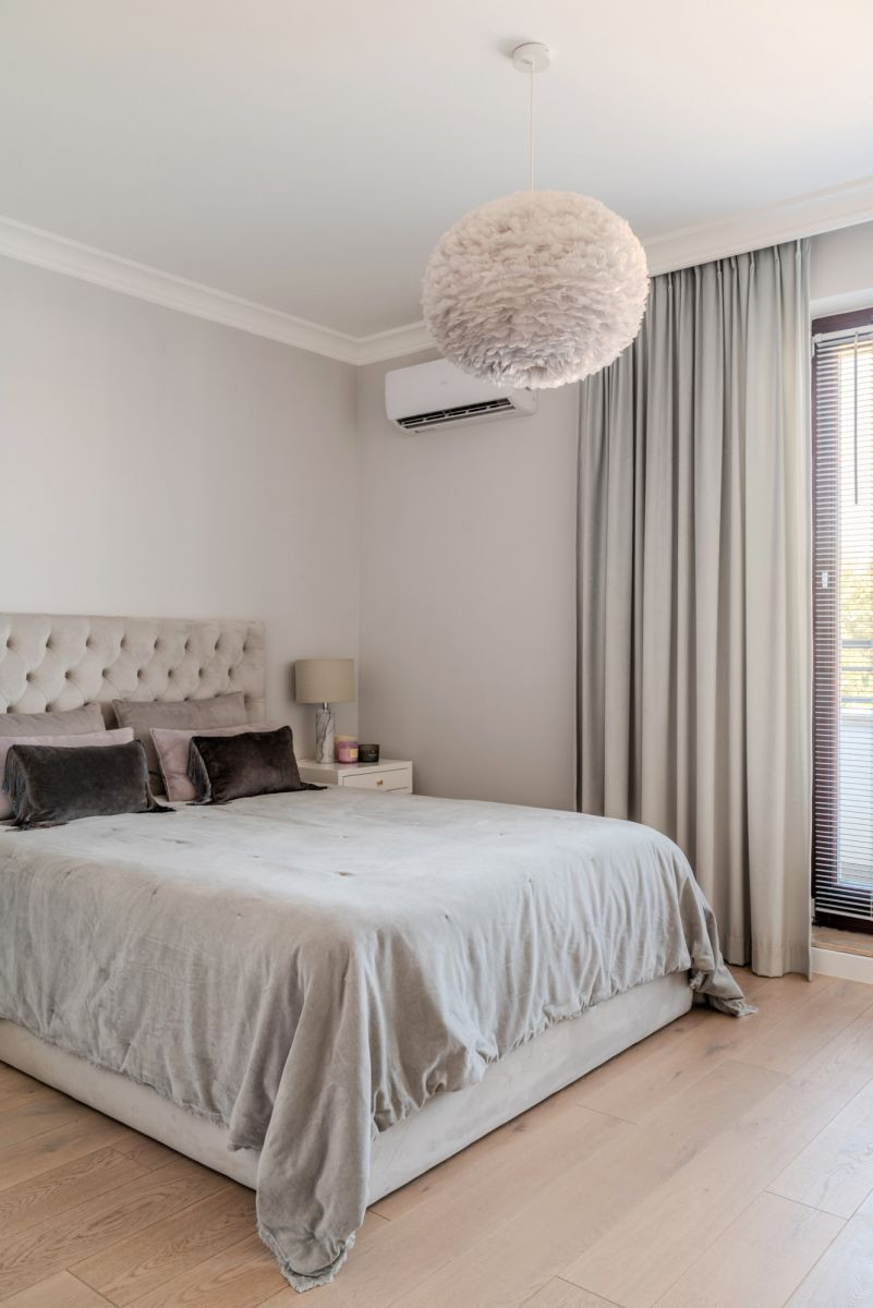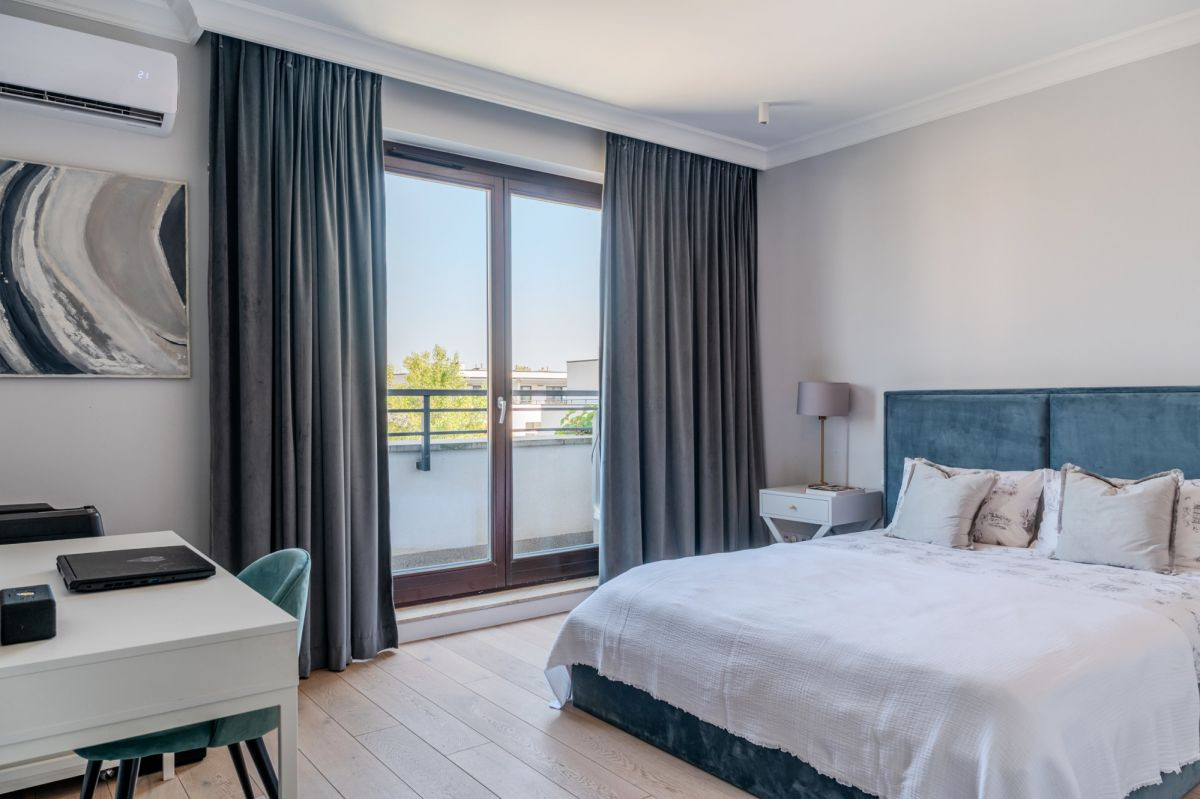Wszystkie pokoje wyposażone są w klimatyzację, a w jednej z łazienek zastosowano ogrzewanie podłogowe. Wnętrze wykończono dębowym parkietem, który harmonijnie komponuje się z nowoczesną zabudową.