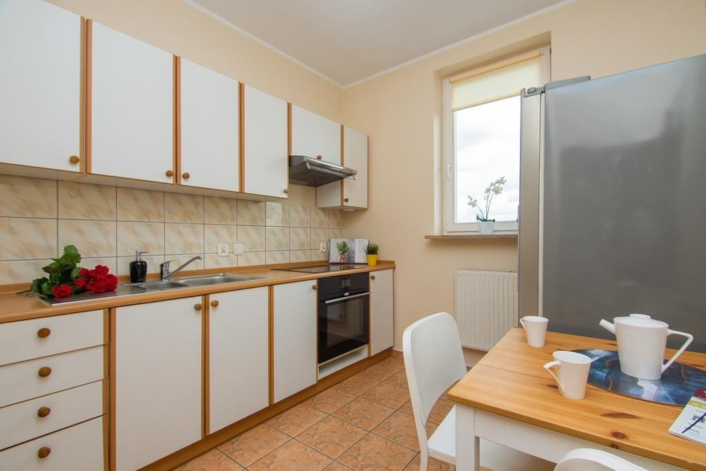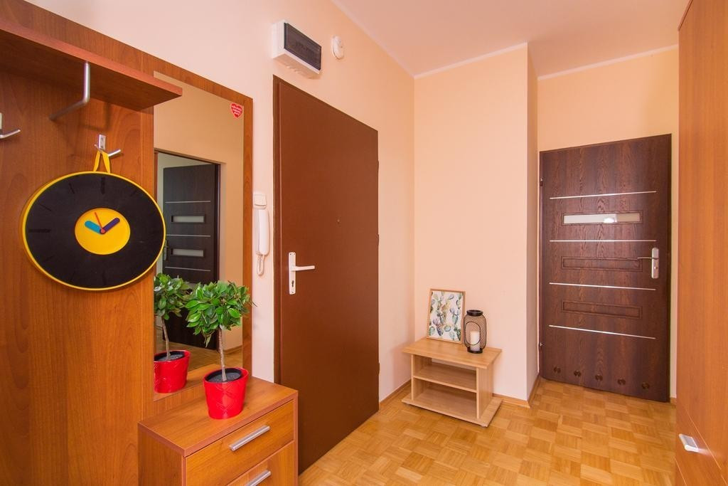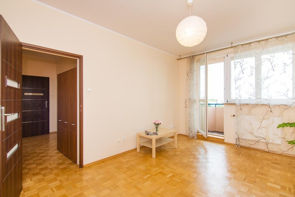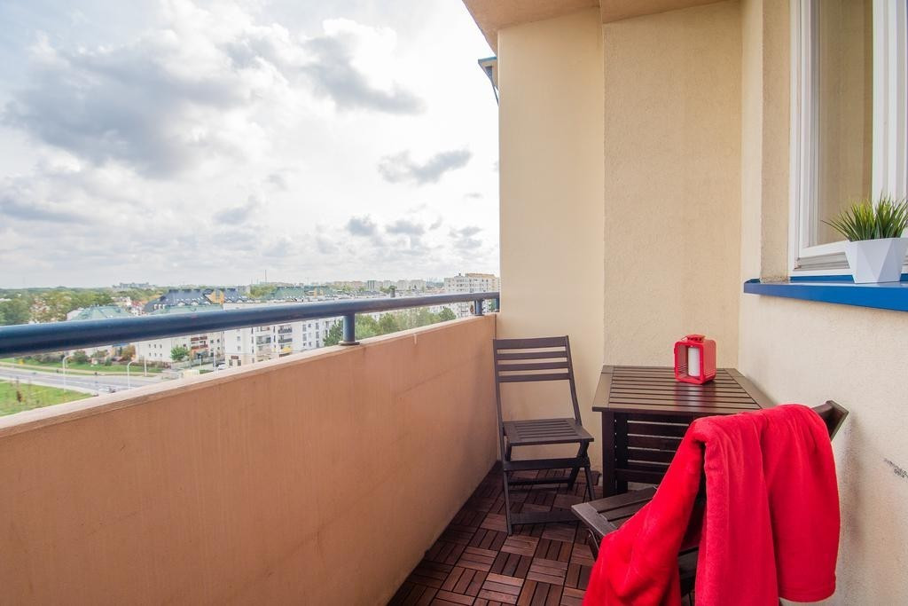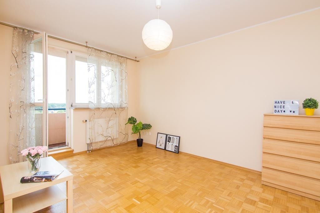 Mieszkanie posiada funkcjonalny układ. Większy pokój o powierzchni 16,7m2 posiada wyjście na balkon. Mniejszy pokój o powierzchni 8,5m2 idealnie nadaje się na sypialnię lub pokój dla dziecka. Oddzielna kuchnia wyposażona w sprzęty AGD (płyta indukcyjna, piekarnik, itd.) ma powierzchnię 7,9m2. Łazienka z WC z wanną o powierzchni 4,2m2. Na podłodze w pokojach i przedpokoju parkiet. Mieszkanie jest bardzo słoneczne i widne, okna PCV z ekspozycją wschodnią. Wysokie piętro daje niesamowity widok.